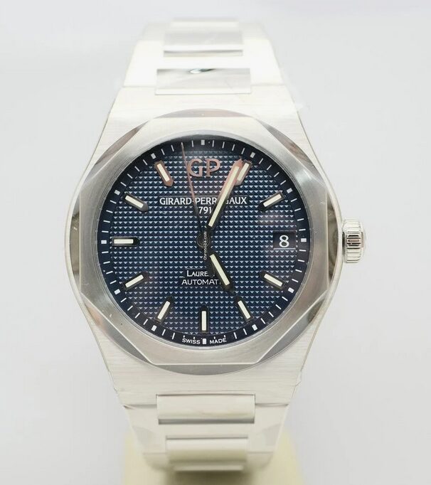 Orologio marca Girard Perregaux modello Laureato ref. GP81010 – orologio nuovo, totalmente pellicolato, garanzia datata 23-10-2025, full set, quadrante blu.