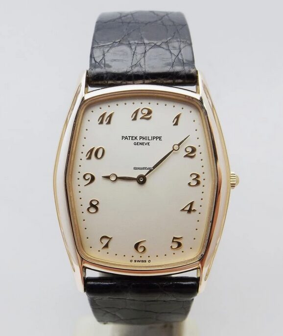 Orologio marca Patek Philippe modello Gondolo ref. 3842 in oro rosa. Condizioni pari al nuovo, cinturino originale usato, fibbia originale in oro rosa – vetro minerale, cassa da 29mm per 32mm – 37mm da ansa ad ansa. Completo della sua garanzia originale con nome acquirente ritagliato come visibile in foto. Venduto con ulteriore garanzia del nostro negozio.