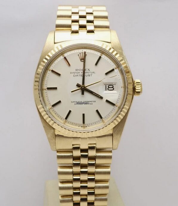 Orologio marca Rolex modello Datejust ref. 1601 anno 1977 in ottime condizioni – bracciale jubilee adatto per polsi fino a 20cm di circonferenza – quadrante Silver – vetro plexi – revisionato e garantito 12 mesi – lucidato professionalmente.